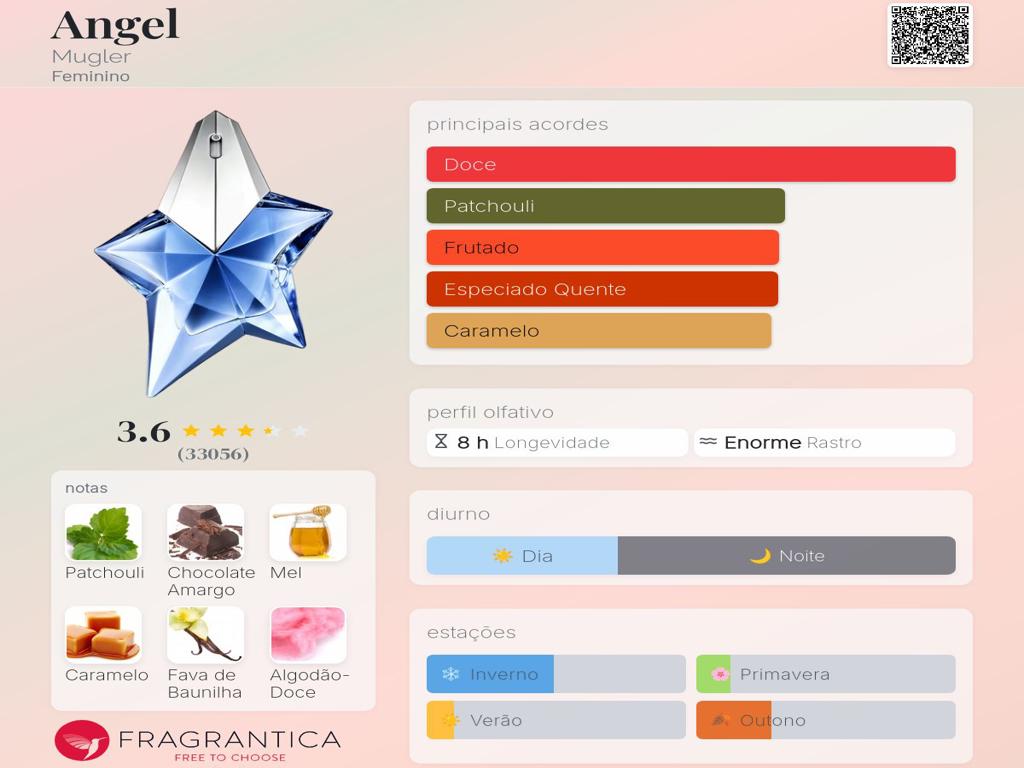 O Mugler Angel é um perfume feminino em Eau de Parfum, com 100ml, que entrega uma fragrância oriental gourmand intensa, doce e extremamente marcante. Um verdadeiro clássico da perfumaria, perfeito para mulheres que buscam um perfume ousado, sofisticado e de alta performance para ocasiões especiais.