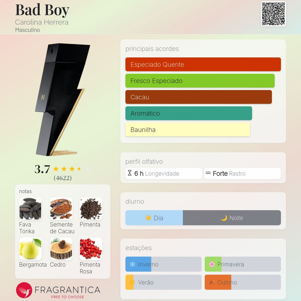 O Carolina Herrera Bad Boy é um perfume masculino em Eau de Toilette, com 100ml, que entrega uma fragrância oriental especiada intensa, moderna e sedutora. Uma excelente escolha para homens que buscam um perfume marcante, ousado e cheio de personalidade.