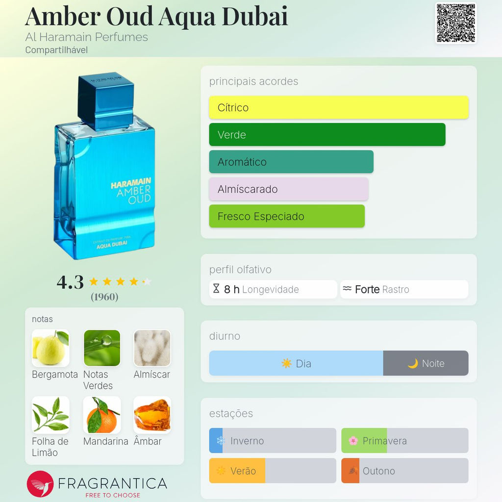 O Al Haramain Amber Oud Aqua Dubai Eau de Parfum 100ml é uma fragrância compartilhável fresca, elegante e sofisticada, inspirada no luxo moderno e no frescor das paisagens aquáticas. Com uma composição equilibrada entre notas aquáticas, cítricas e amadeiradas, resulta em um aroma limpo, refinado e extremamente agradável.